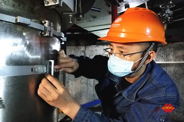 圖為該公司青年員工認(rèn)真檢查水力發(fā)電機(jī)組齒盤測(cè)速裝置并進(jìn)行消缺