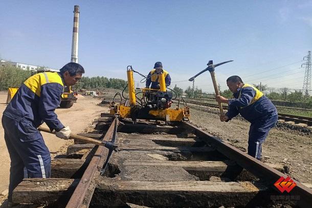圖為技術(shù)人員使用養(yǎng)路機(jī)械拆除腐蝕枕木