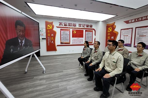 大渡河大崗山公司運(yùn)維三值值長徐博海和值班員們在水電站現(xiàn)場收看黨的二十大開幕會直播。