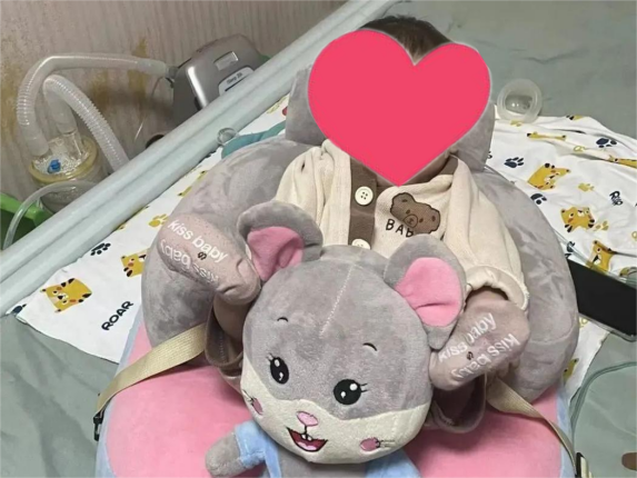 襁褓中的洋洋從出生的那一天起,就全身戴滿儀器,靠有創(chuàng)呼吸機和醫(yī)生的輔助才能呼吸,這樣的狀態(tài)一直持續(xù)了3個月。這個弱小的生命,在短短8個月的時間里,接受了從肺動脈到小腸的三次手術(shù),只是為了讓身體達到可以做心臟手術(shù)的條件。