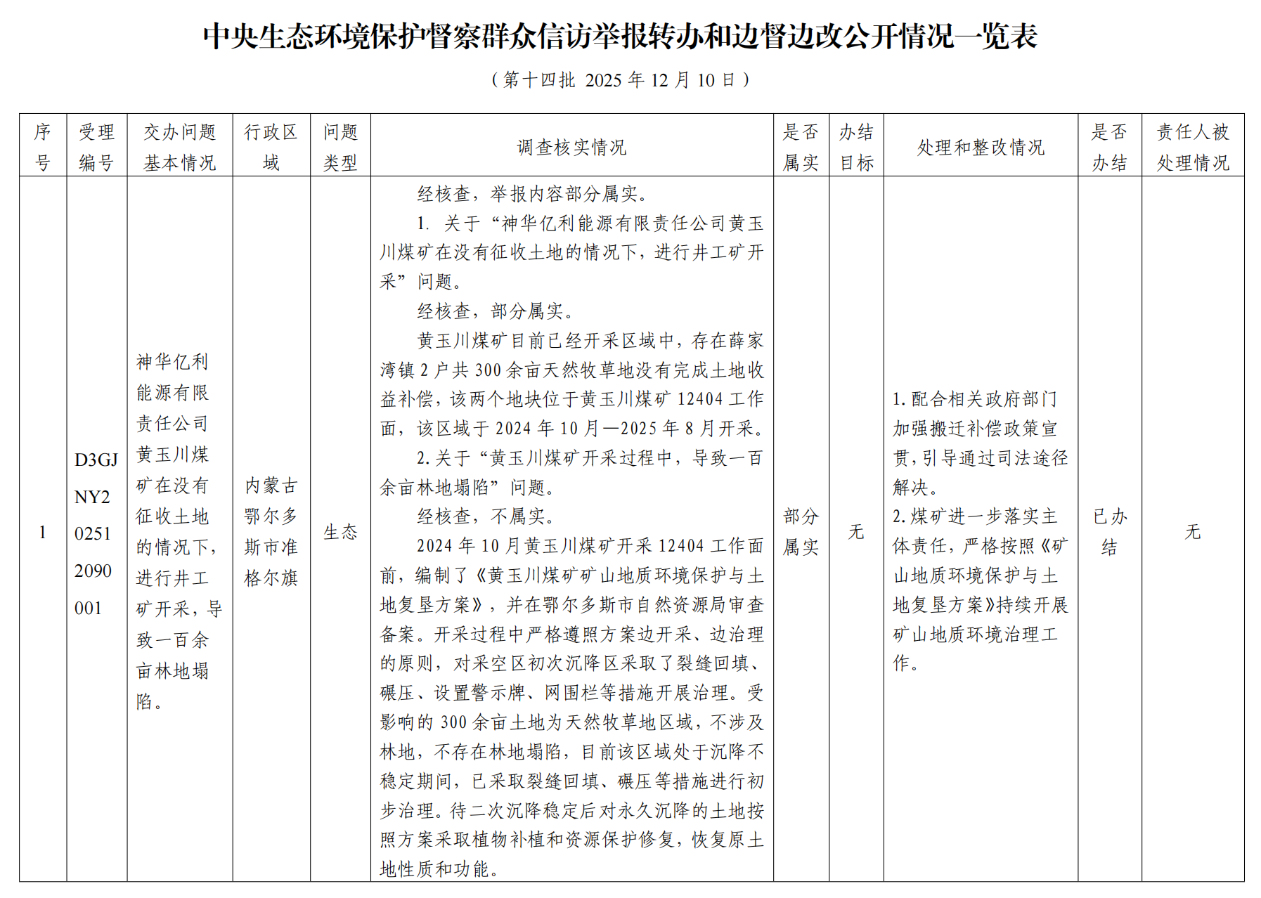 返回首頁(yè)中央生態(tài)環(huán)境保護(hù)督察群眾信訪舉報(bào)轉(zhuǎn)辦和邊督邊改公開情況一覽表(第十四批 2025年12月10日)