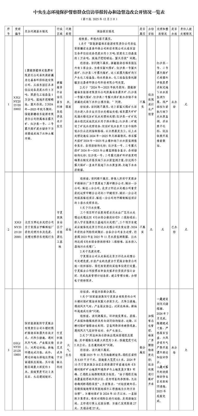 中央生態(tài)環(huán)境保護督察群眾信訪舉報轉(zhuǎn)辦和邊督邊改公開情況一覽表(第十批 2025年12月2日)