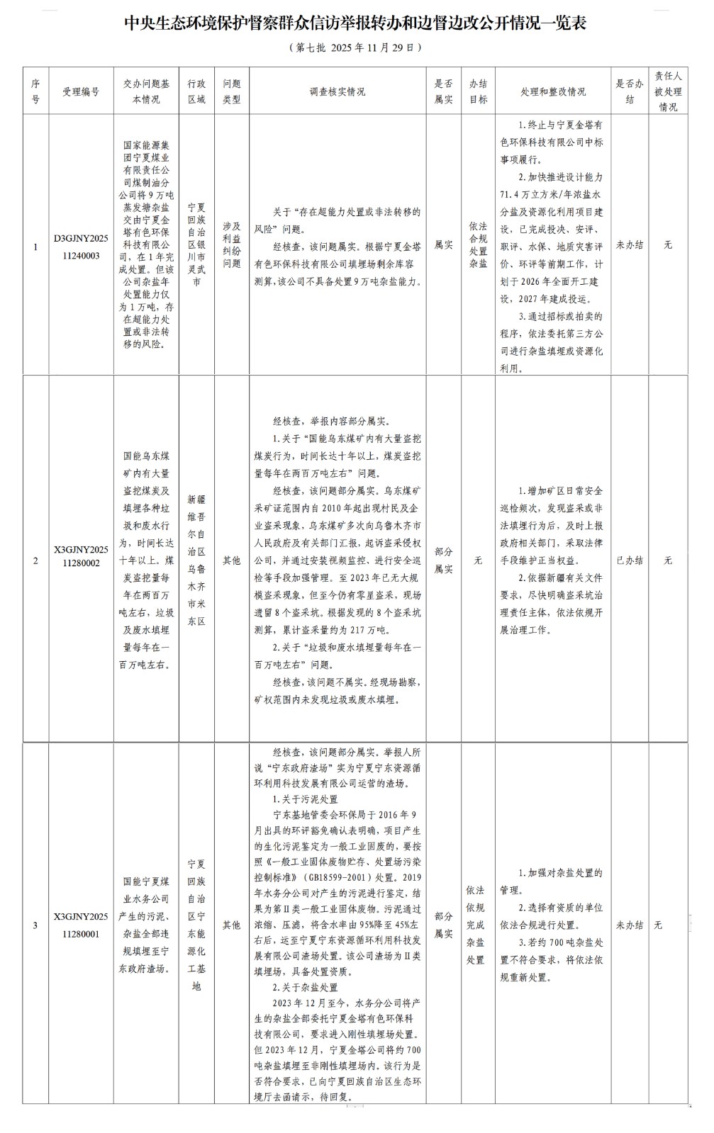 中央生態(tài)環(huán)境保護督察群眾信訪舉報轉(zhuǎn)辦和邊督邊改公開情況一覽表(第七批 2025年11月29日)