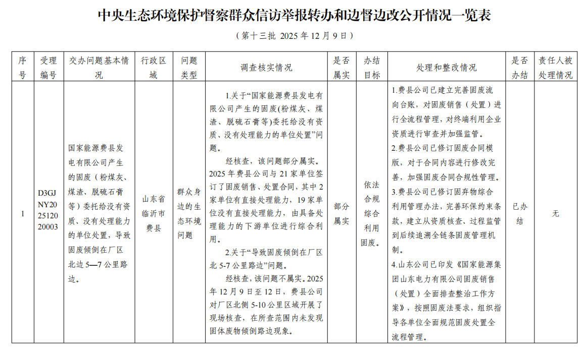 返回首頁(yè)中央生態(tài)環(huán)境保護(hù)督察群眾信訪舉報(bào)轉(zhuǎn)辦和邊督邊改公開情況一覽表(第十三批 2025年12月9日)