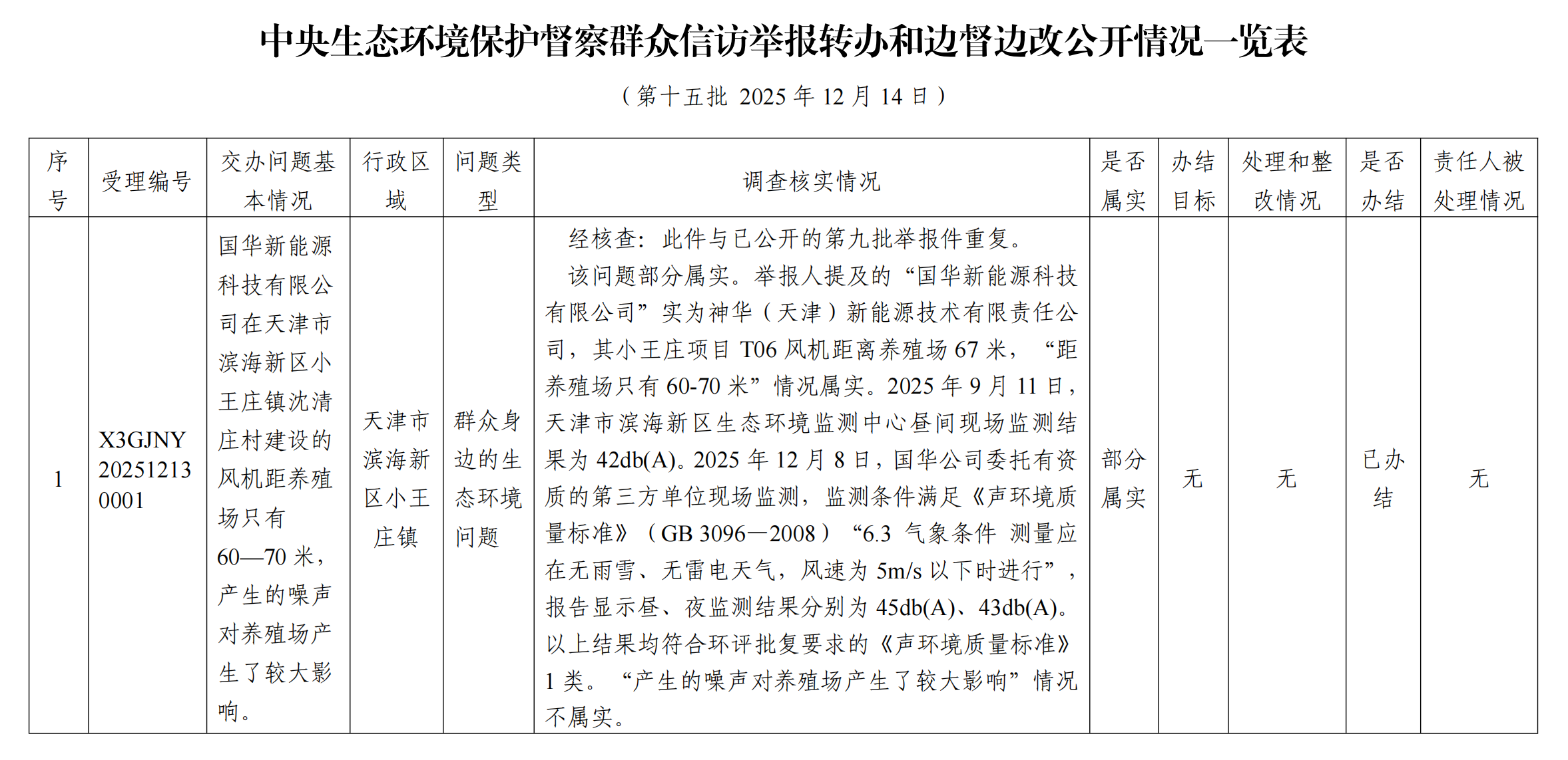 中央生態(tài)環(huán)境保護督察群眾信訪舉報轉(zhuǎn)辦和邊督邊改公開情況一覽表(第十五批 2025年12月14日)