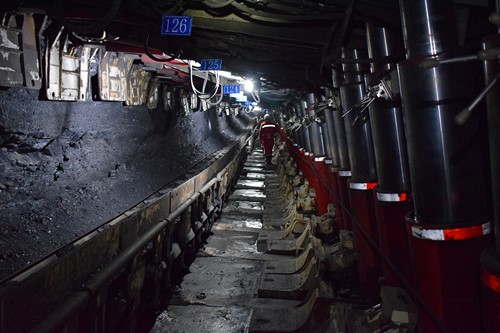 烏海能源不斷提升產(chǎn)業(yè)發(fā)展水平,煤礦生產(chǎn)一線機械化程度不斷提高,有效降低職工的勞動強度。圖為烏海能源棋盤井煤礦綜采工作面。