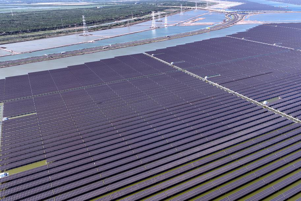 圖為龍?jiān)措娏μ旖蚝>}光互補(bǔ)發(fā)電項(xiàng)目