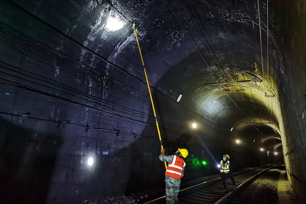 除冰作業(yè)不僅是一項體力活,更是一項技術(shù)活。為了保障隧道內(nèi)供電設(shè)備運行安全,他們通過視頻監(jiān)測、徒步巡視等方式,掌握隧道滲漏水點和結(jié)冰位置,并結(jié)合溫度變化確定打冰時間和頻次。