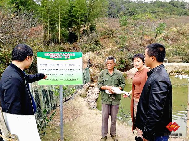 圖為該公司駐村干部檢查激勵性扶貧項(xiàng)目連城白鶩鴨養(yǎng)殖情況