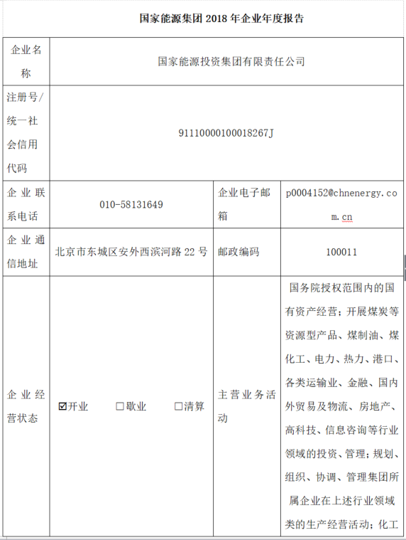 國家能源集團(tuán)2018年企業(yè)年度報(bào)告