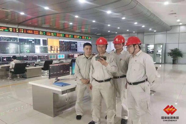 圖為神皖廬江公司一線員工在保電現(xiàn)場收看慶祝中國共產(chǎn)黨成立100周年大會盛況