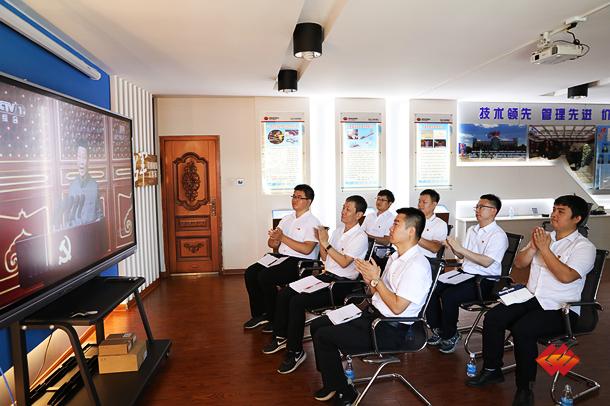 圖為神東物資供應(yīng)中心在廠房收看慶祝中國共產(chǎn)黨成立100周年大會盛況