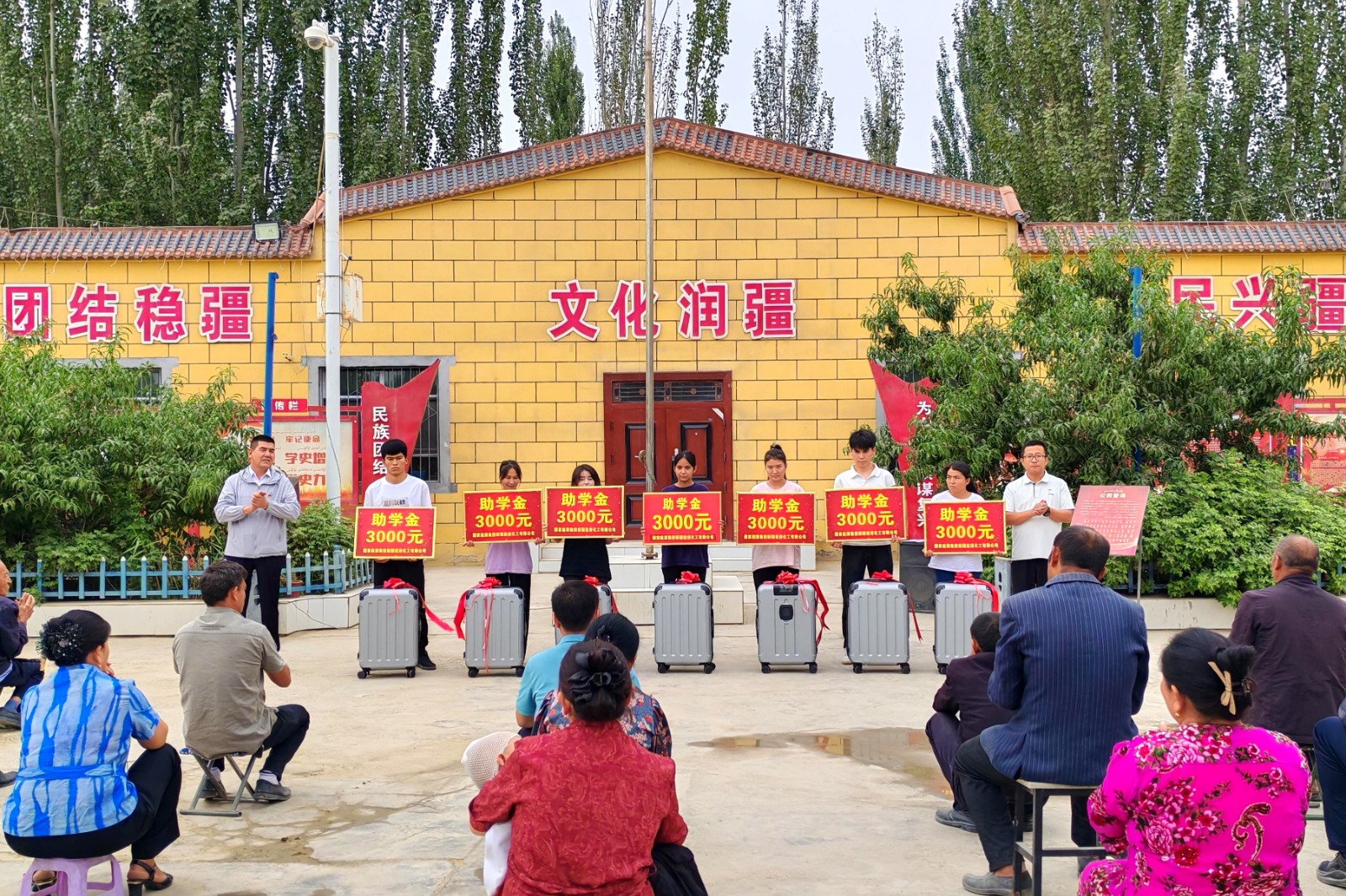 圖為新疆能源駐村工作隊開展“金秋助學(xué)”活動現(xiàn)場