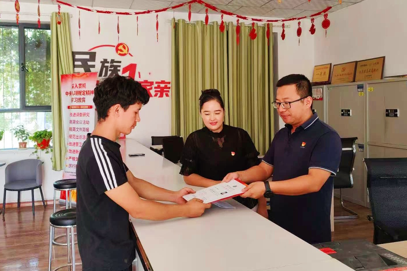 圖為駐村工作隊與村“兩委”共同分享大學(xué)生考上大學(xué)的喜悅