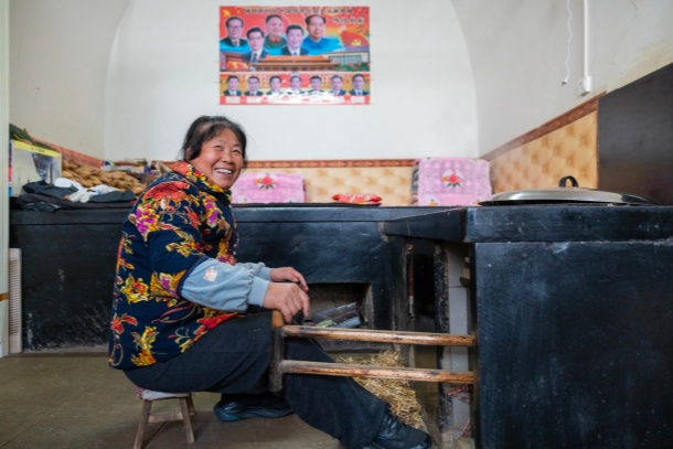 楊家溝村雷興芳老人的六孔窯洞整齊干凈,走進其中一孔窯洞,灶火燒得正旺,屋里暖烘烘的。老人坐在灶火前,一手慢悠悠拉著風(fēng)箱,另一只手不自覺地摩挲著衣角,聲音里裹著藏不住的歡喜:“那些‘藍(lán)板板’又掙錢了,村里又給我們分紅了!”她伸出指頭掐著算:“咱家八口人,一人400元,這就是3200元。還給每人交了400元的合作醫(yī)療費,這又是3200元……”算到盡興處,她的嘴角咧得更大了,眼角的皺紋擠成了一團,連聲音都洪亮了幾分。