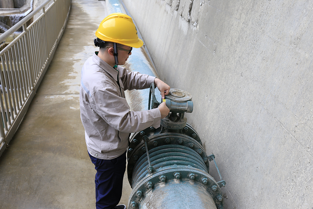 運行人員現(xiàn)場巡回檢查大壩滲漏排水系統(tǒng)