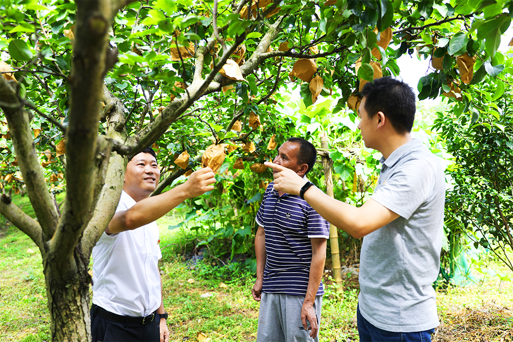 2016年,廣西公司開始對徐源村實(shí)施精準(zhǔn)扶貧,派出兩名優(yōu)秀青年干部赴徐源村擔(dān)任第一書記和工作隊員,通過抓產(chǎn)業(yè)發(fā)展、基礎(chǔ)設(shè)施建設(shè)、扶貧政策落實(shí),幫助貧困戶打贏脫貧攻堅戰(zhàn)。圖為廣西分公司駐徐源村第一書記鄭洪、扶貧工作隊員黃濤正在同村民陸紅發(fā)交流雪梨種植經(jīng)驗。