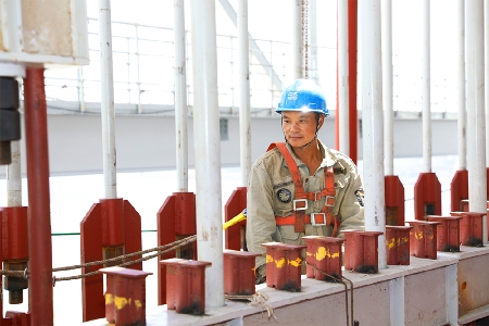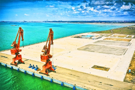圖為已經(jīng)建成的2個10萬噸級泊位碼頭。1號件雜貨碼頭年吞吐能力160萬噸,2號散貨碼頭設(shè)計年吞吐能力981萬噸