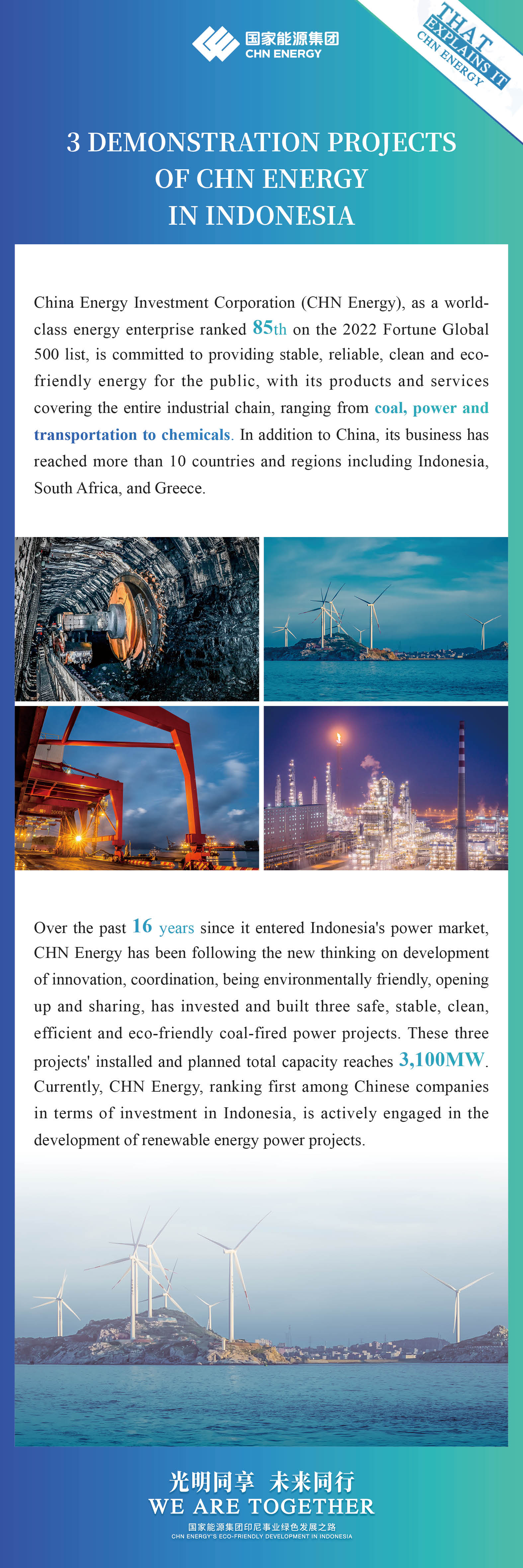 Over the past 16 years since it entered Indonesia's power market, CHN Energy has devoted itself to facilitating power supply, promoting local socio-economic development, and exploring a path of harmonious coexistence between human and nature. It has worked with the Indonesian people to advance the building of a community with a shared future for mankind.【more】